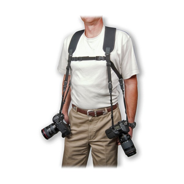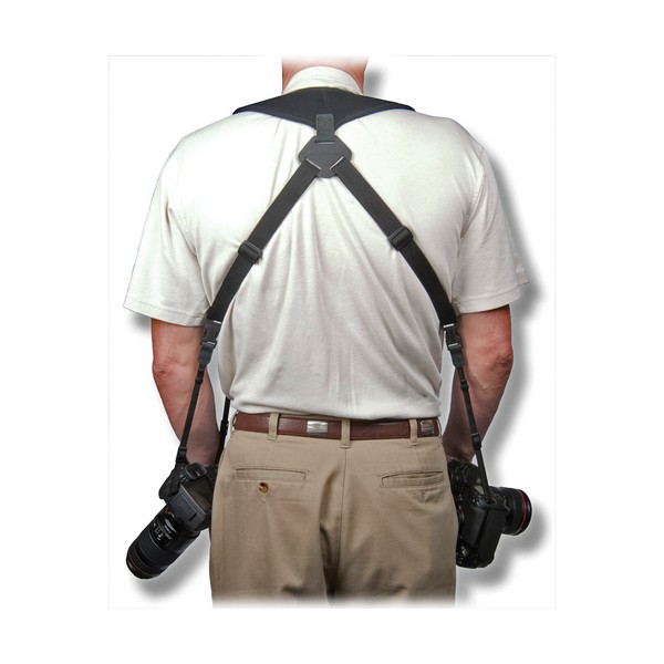 Le harnais double offre un accès rapide à deux appareils photos ou jumelles.