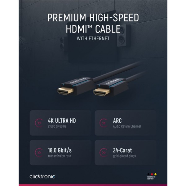 Le câble 4K Clicktronic avec certification officielle HDMI™ Premium garantit la meilleure qualité.