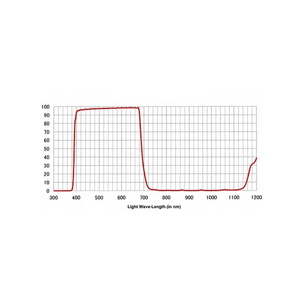 Le Hoya UV - IR Cut est un filtre spécialisé qui a la capacité de couper les rayons UV en dessous de 390 nm et les rayons IR au dessus de 700m en ne laissant que les rayons lumineux dans le spectre visible passant dans le filtre.