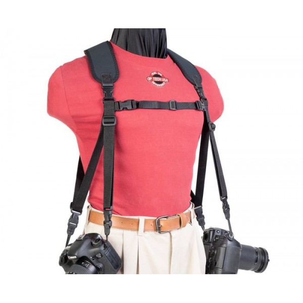 Le harnais double Uni Loop propose des connecteurs avec une boucle pour les photographes souhaitant un connecteur court sur leur appareil photo.