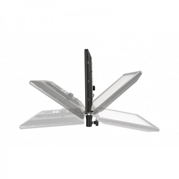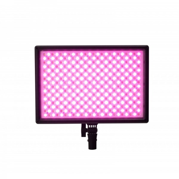 Le panneau LED RGBWW incorpore trois sources de lumière dans un luminaire compact. Basculez entre une source LED "traditionnelle" prour une lumière plus dure "Hard"; LED SMD pour une lumière douce "Soft", et LED rouges, vertes et bleues qui peuvent être mélangées pour créer plus de 360 couleurs. Avec une gradation de 0 à 100%, une sortie maximale de 11 593 Lux @ 0.5m 5600K, une température de couleur réglable de 3200-6500K et une teinte réglable en mode RGB. Alimenté par une alimentation secteur ou une batterie de type Sony NP-F (vendu séparément).