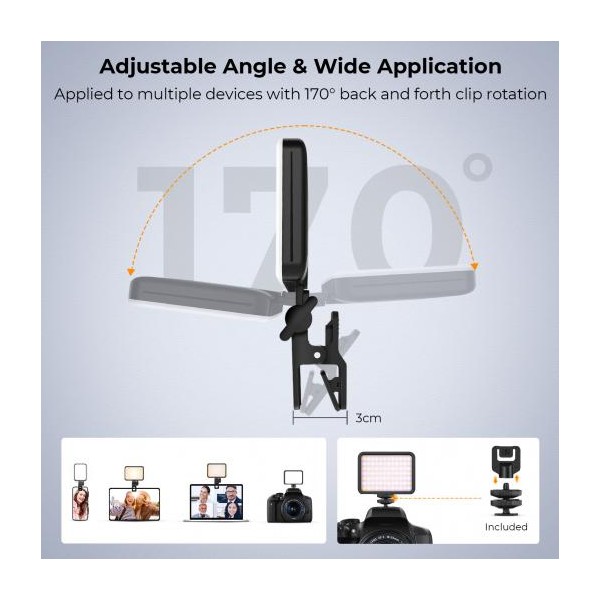 Peut être fixée sur l'écran d'un téléphone portable, d'un ordinateur portable, d'une tablette ou d'un ordinateur, et est équipée d'un convertisseur de trou de vis 1/4 et d'un adaptateur de griffe froide, et peut également être fixé sur un appareil photo ou un pied d'éclairage