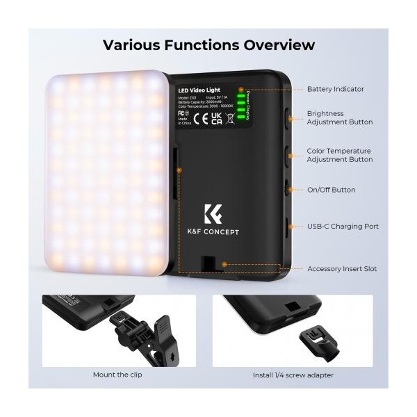 K&F LED portable 3000K-10000K
