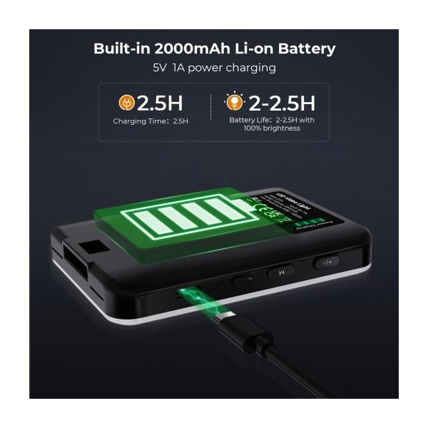 Batterie au lithium intégrée de 2 000 mAh de haute qualité, la luminosité maximale peut atteindre 2 à 2,5 heures,.